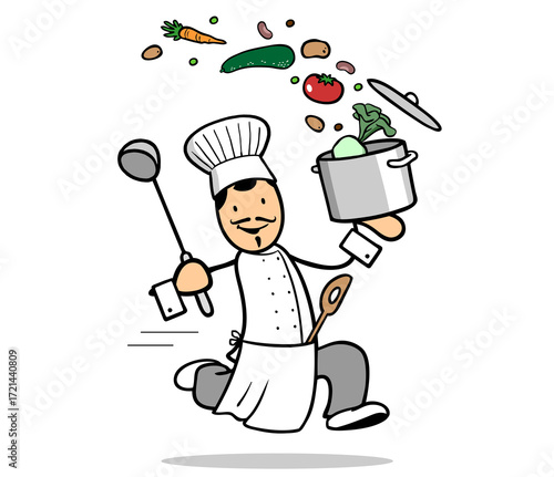 Schneller Cartoon Koch mit veganer Gemüsepfanne