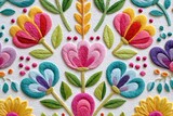 Vibrant floral embroidery closeup with colorful handcrafted thread art details