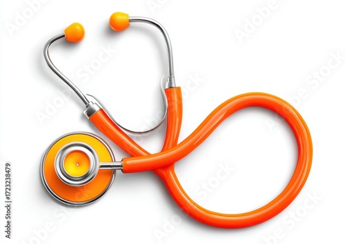 Orange stethoscope on white background for health care professionals, close up medical tool