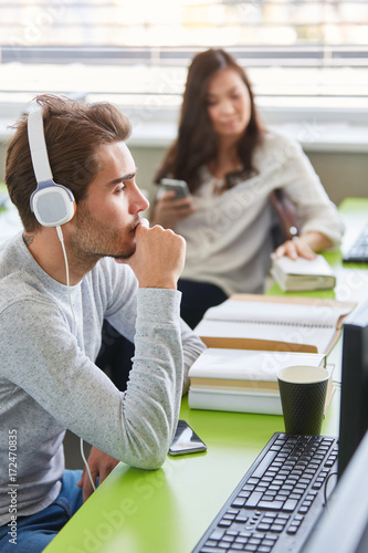 IT Student mit Kopfhörer im Computerkurs