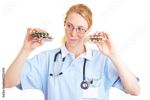Ärztin verabreicht Tabletten