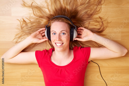Woman relaxing with music over headphones