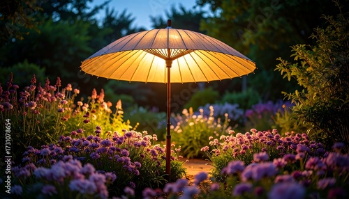 Vibrant multi-colored beach umbrella isolated on white background for summer vacation