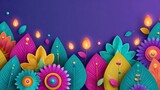 Colorful Diwali festival foliage and flowers with glowing lamps in a vibrant backdrop