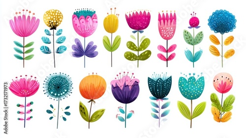 Whimsical and colorful flower illustrations set with quirky blossoms and fantastical petals