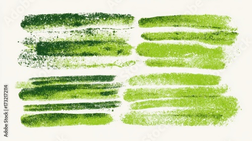 Green ink textures with rough linocut strokes and stamp effects for design and art projects