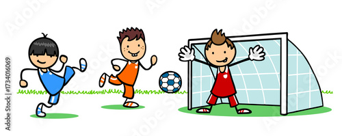 Cartoon Kinder spielen Fußball im Verein zusammen