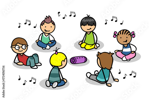 Gruppe Kita Kinder hört Musik über Bluetooth Lautsprecher
