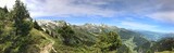 Panoramic view of an alpine landscape with distant mountains and open skies