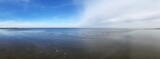 Panoramic view of a serene seascape with gentle waves under a blue sky