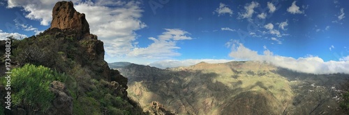 Majestic mountain landscape panorama with clear blue sky and rocky formations