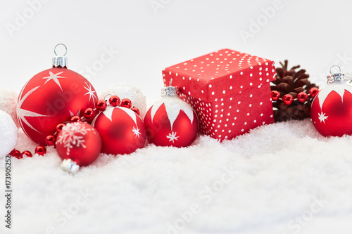 Rote Dekoration zu Weihnachten für Weihnachtskarte