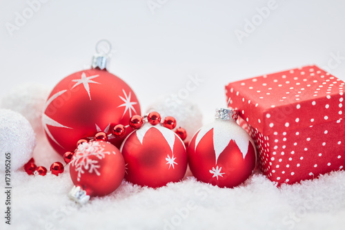 Weihnachten Panorama mit Geschenk und Christbaumkugel