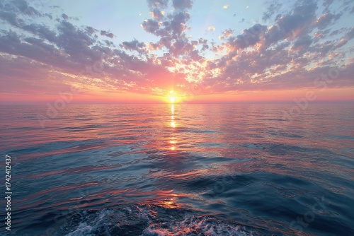Breathtaking sunset over the ocean with vibrant sky and tranquil sea