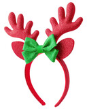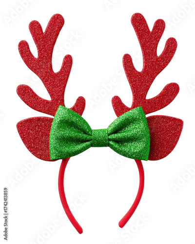 PNG glitter red reindeer headband with green bow for Christmas party photos and festive costumes
