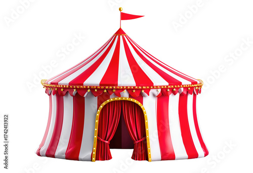 PNG circus tent with red and white stripes and bright entrance for festive performance atmosphere