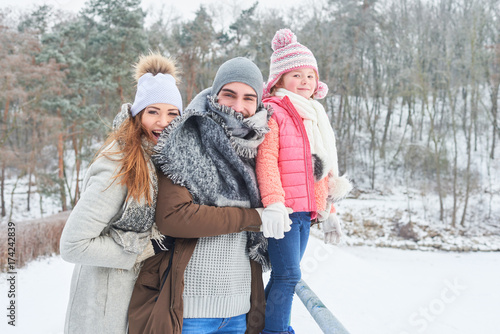 Lachendes Paar trägt ein Weihnachtgeschenk