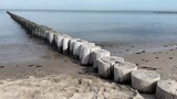 Calm ocean, wooden groins on sandy beach in Graal-Müritz, Germany.
