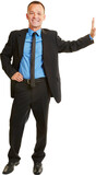 Lächelnder Geschäftsmann lehnt an imaginärer Wand