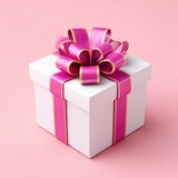 White gift box with bright pink ribbon and bow, perfect for celebrations and surprises