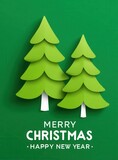 Merry Christmas and Happy New Year with green paper trees in a festive scene