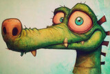 Funny cartoon crocodile illustration in a quirky and colorful artistic style