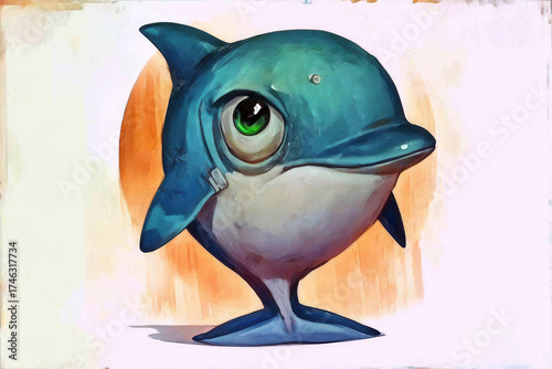 Cute artistic dolphin illustration with a whimsical and funny expression