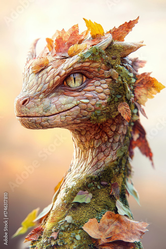 A captivating close-up of a nature-inspired fantasy creature with vivid details