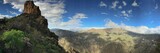Majestic mountain landscape panorama with clear blue sky and rocky formations