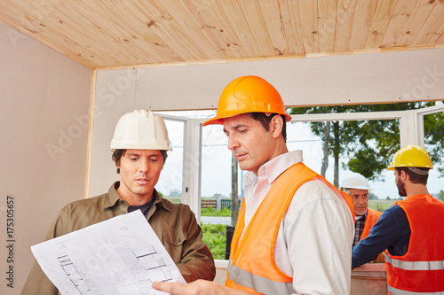 Architekt und Handwerker mit Bauplan