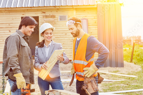 Ausbilder und Frau als Schreiner Azubi lesen Email