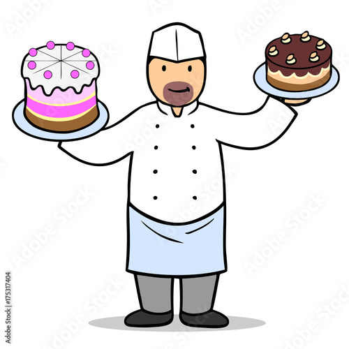 Cartoon Konditor mit Torte und Spritzbeutel