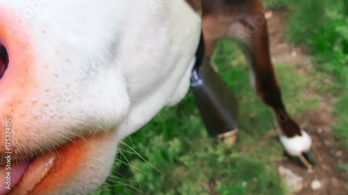 Sustainable energy and agriculture concept with cows grazing between solar panels