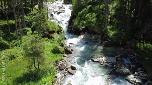 Powerful Rapids of a Pristine Mountain River Flowing Through the Austrian Alps in Summer.