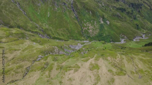 Drone View of a Lush Green Mountain Valley in the Austrian Alps During Summer