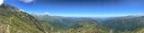 Panoramic view of an alpine landscape with distant mountains and open skies