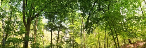 Lush forest panorama showcasing natural green trees in vibrant summer daylight