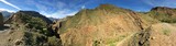Panoramic mountain view with clear blue skies and rugged rocky terrain