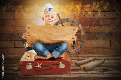 Kind als Matrose mit Schatzkarte