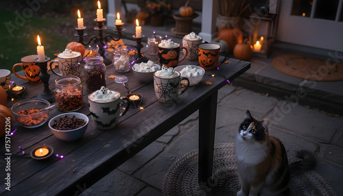 Corgi and cat dressed up with pumpkins for fun Halloween celebration