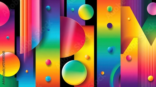 Vibrant abstract composition with neon gradients and three-dimensional shapes in rainbow colors