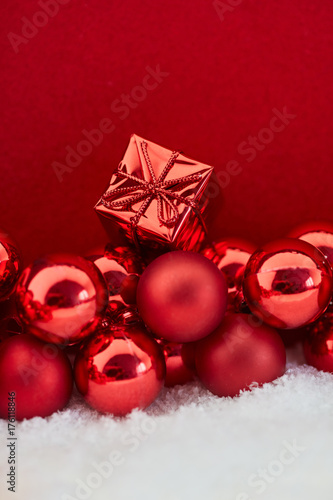 Weihnachten Panorama mit Geschenk und Christbaumkugel