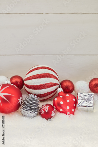 Weihnachten Panorama mit Geschenk und Christbaumkugel