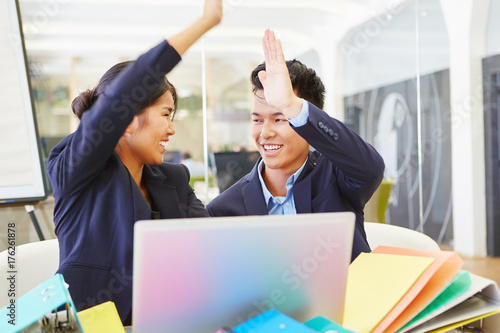 Asiatische Geschäftsleute geben sich High Five