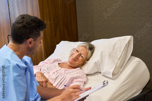 Healthcare professional assisting senior woman patient in a rehabilitation setting