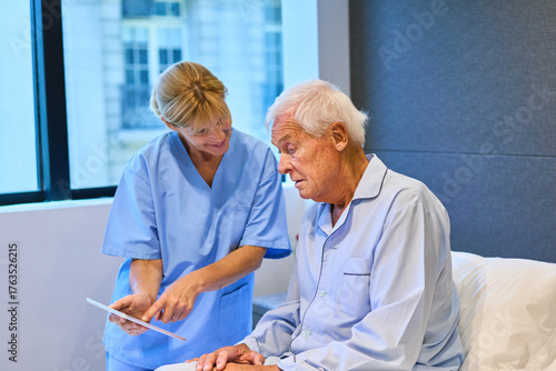 Nurse helping a senior patient during recovery in a rehabilitation facility