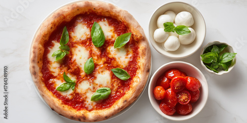 Delicious Margherita pizza with fresh basil and mozzarella cheese, top view