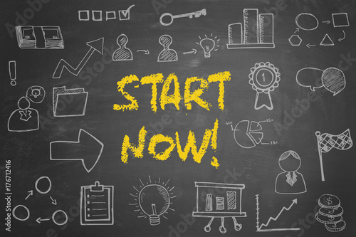 Start now! Konzept auf Tafel