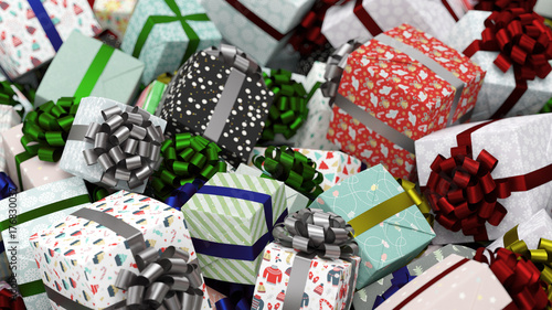 Bunte Geschenke zu Weihnachten auf einem Haufen