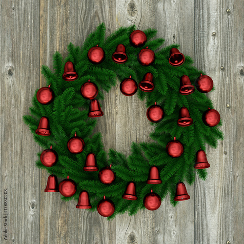 Kranz mit Dekoration zu Weihnachten auf Holz